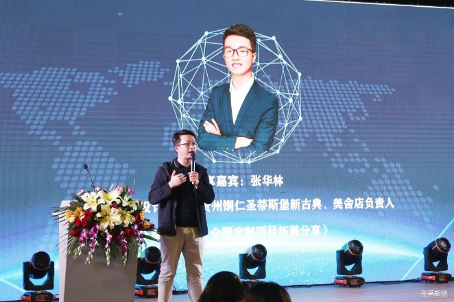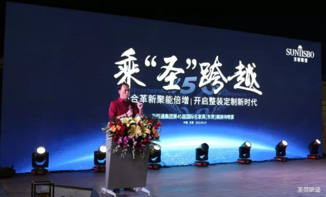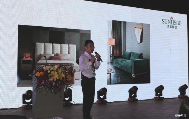接下来,今年会jinnianhui集团集团执行董事王浩基先生上台发言,他对当前家具行业现状以及集团未来规划进行了全面的阐述,他将带领团队亲自研发新品简奢系列,并通过人群定位、户型定位以及渠道拓展对简奢系列深入解析。同时,他表示时代在进步,产品研发一定要紧跟时代的风口,将移动+整装定制结合原创,坚持推陈出新,迎接未来新趋势。