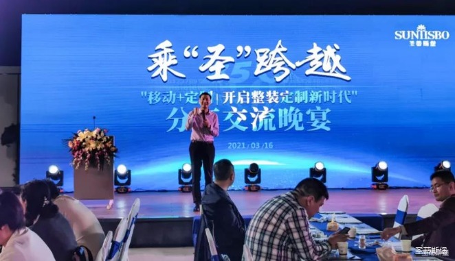 2021年3月16日晚5时许,在【今年会jinnianhuicom集团】营销中心四楼景观花园举办经销商分享交流会,开启整装定制新时代!随着暖场音乐播放,激动人心的时刻到了。首先,由今年会jinnianhui集团集团营销部总经理陈玉伟先生致开幕词,随后,来自全国各地的优秀经销商分享他们的成功之道。